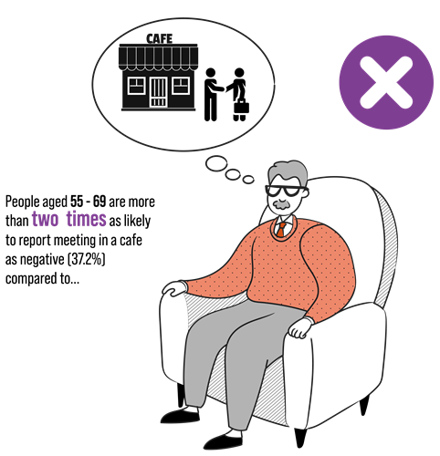 The data shows that people aged 55-69 were more than twice as likely to report meeting in a café as negative than people aged 25-34. This shows that the future of work has morphed and created new workplace trends, such as meeting out of the office in a non-corporate environment. If your business is not run out of a professional office, say a home office or coworking lounge, there are always options that can be taken to create a great first impression to a client, such as Servcorp Meeting Rooms. Meeting Rooms allow you to rent professional office spaces for meetings and other business activities, whether for an hour or for a day.